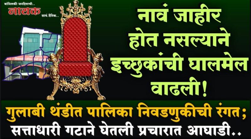 नावं जाहीर होत नसल्याने इच्छुकांची घालमेल वाढली! गुलाबी थंडीत पालिका निवडणुकीची रंगत; सत्ताधारी गटाने घेतली प्रचारात आघाडी..