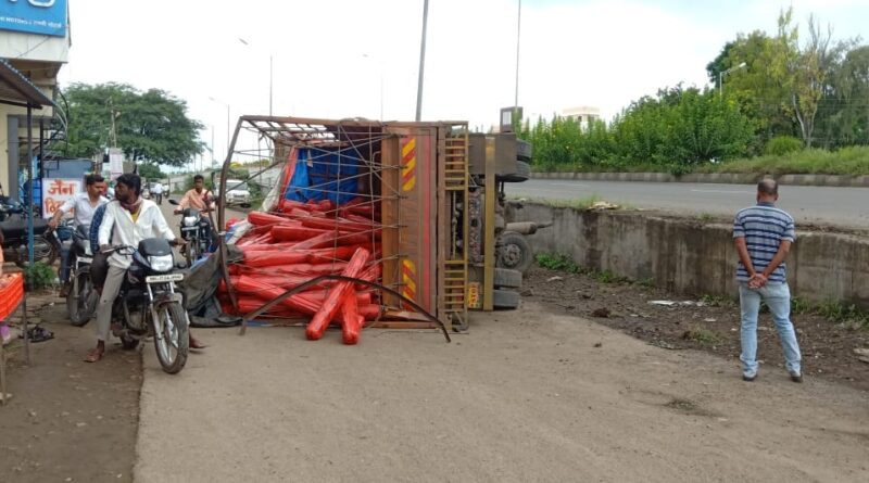 टायर फुटल्याने ट्रक उलटला; वाहतूक विस्कळीत