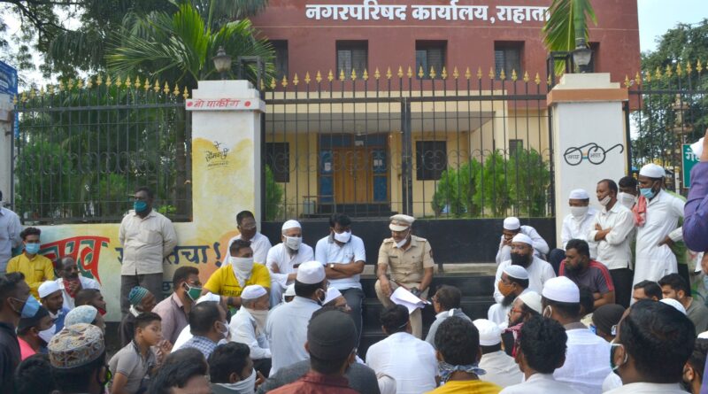 अतिक्रमण काढल्याने राहाता पालिकेसमोर मुस्लीम बांधवांचा ठिय्या