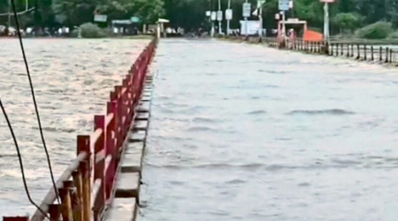गोदावरी नदीने धोक्याची पातळी ओलांडली कोपरगावमधील मौनगिरी सेतू गेला पाण्याखाली; पोलिसांचा चोख बंदोबस्त