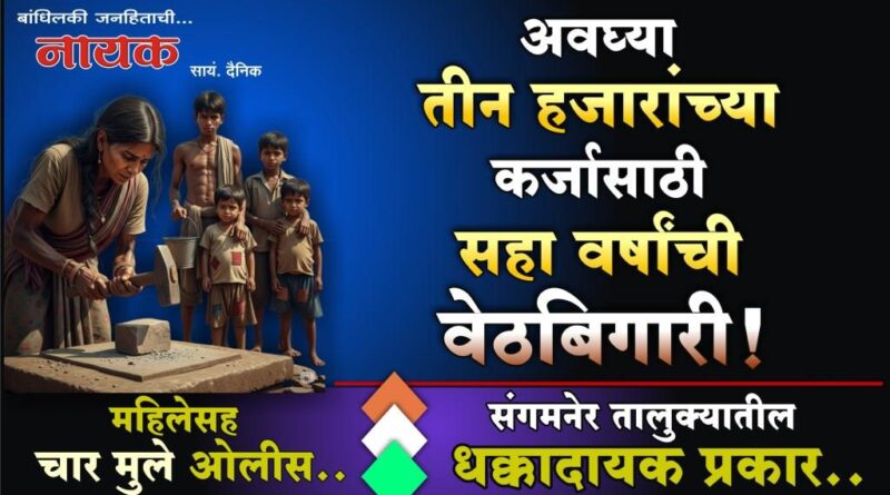 अवघ्या तीन हजारांच्या कर्जासाठी सहा वर्षांची वेठबिगारी! महिलेसह चार मुले ओलीस; संगमनेर तालुक्यातील धक्कादायक प्रकार..