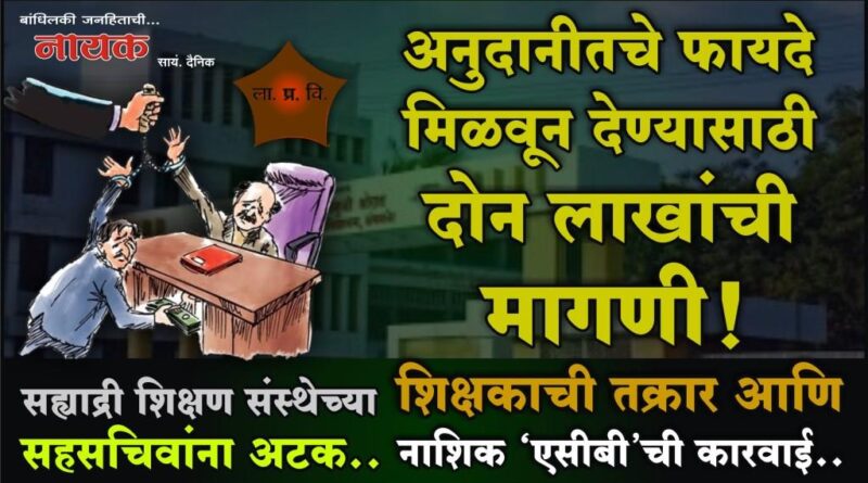 अनुदानीतचे फायदे मिळवून देण्यासाठी दोन लाखांची मागणी! सह्याद्री शिक्षण संस्थेच्या सहसचिवांना अटक; शिक्षकाची तक्रार आणि नाशिक ‘एसीबी’ची कारवाई..