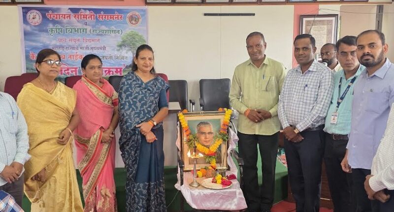 संगमनेर पंचायत समितीच्या सभागृहात माजी मुख्यमंत्री वसंतराव नाईक यांच्या जयंती निमित्त आयोजित करण्यात आलेल्या कृषी दिनाच्या कार्यक्रमात निलम खताळ बोलत होत्या. यावेळी व्यासपीठावर उपविभागीय कृषी अधिकारी प्रवीण गोसावी, गटविकास अधिकारी राजेंद्र ठाकूर,तालुका कृषी अधिकारी रेजा बोडके, पंचायत समितीचे कृषी अधिकारी व्ही. एन. उघडे ,कृषीभूषण पुरस्कार विजेते विठ्ठलदास आसावा, शेतीनिष्ठ पुरस्कार विजेते तुकाराम गुंजाळ, कक्ष अधिकारी राजेश तिटमे, अधीक्षक मोहन कडलग, गणेश तोटे आदी मान्यवर उपस्थित होते.