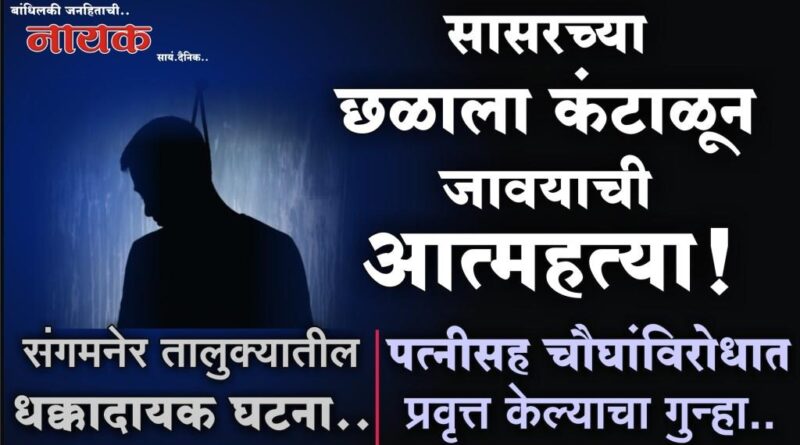 सासरच्या छळाला कंटाळून जावयाची आत्महत्या! संगमनेर तालुक्यातील धक्कादायक घटना; पत्नीसह चौघांविरोधात प्रवृत्त केल्याचा गुन्हा..