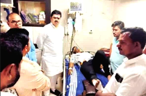 तालुक्यातील धनेगाव परिसरात अतिवृष्टीमुळे नुकसान झालेल्या शेतीचे पंचनामे करण्यासाठी गेलेले तलाठी आकाश काशिकेदार यांना गुरुवार दि.२ ऑक्टोबर रोजी सकाळी सर्पदंश झाला. ही घटना घडताच ग्रामस्थांच्या मदतीने त्यांना तातडीने जामखेड येथील खासगी रुग्णालयात दाखल करण्यात आले. सध्या त्यांची प्रकृती स्थिर असल्याचे सांगण्यात आले आहे. त्यांच्या प्रकृतीची रुग्णालयात जाऊन विधान परिषदेचे सभापती प्रा. राम शिंदे यांनी भेट घेत विचारपूस केली.