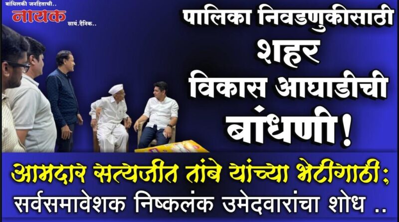 नगरपालिका निवडणुकीच्या पार्श्वभूमीवर सत्ताधारी आणि विरोधक अशा दोहींकडून रणशंख फूंकले गेले असून वातावरण तापण्यास सुरुवात झाली आहे. त्या पार्श्वभूमीवर आमदार सत्यजीत तांबे यांनी गेल्या दोन-तीन दिवसांपासून शहरातील व्यापार्यांसह सर्वसामान्य संगमनेरकरांच्या भेटीगाठी सुरु केल्याने यंदाच्या निवडणुकीत सत्ताधारी गटाचे सेनापत्य त्यांच्याकडे असल्याचे स्पष्ट झाले आहे. अशावेळी गेल्या दोनवर्षांपासून काँग्रेसमधून निलंबित असलेले आमदार तांबे पक्षीय चिन्हावरील निवडणुकीचा पुरस्कार करतील की आघाडीची संकल्पना मांडतील असा प्रश्न निर्माण झाला होता. मात्र तांबे यांच्या भेटीतून सर्वपक्षीय निष्कलंक उमेदवारांचाही शोध सुरु असल्याने संगमनेरात यावेळी ‘शहर विकास आघाडी’ विरुद्ध ‘महायुती’ अशी लढत रंगण्याची चिन्हे आहेत. आमदार तांबे यांनी पुढील पाच वर्षांच्या विकासाचे मॉडेल डोळ्यासमोर ठेवून त्याला पूरक सहकार्यांचा शोध घेण्यासाठीच ‘भेटीगाठी’ सुरु केल्याचे त्यांच्या वर्तुळातून बोलले जात असल्याने आघाडीच्या चर्चांनाही बळ मिळाले आहे.