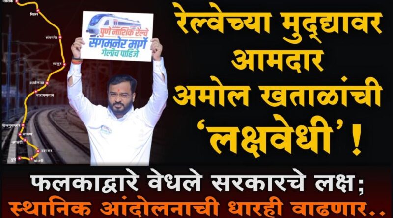 गेल्या अनेक दशकांची मागणी डावलून केंद्रीय रेल्वेमंत्रालयाने पुणे-नाशिक व्हाया संगमनेर रेल्वेमार्ग रद्द केल्याने पुण्यापासून नाशिकपर्यंतच्या तालुक्यांमधील जनक्षोभ उफाळू लागला आहे. या मुद्द्यावर आमदार सत्यजीत तांबे यांनी यापूर्वीच सर्वपक्षीय बैठकीचे आयोजन करुन गल्लीपासून दिल्लीपर्यंत लढा देण्याची घोषणा केल्यानंतर आता आमदार अमोल खताळ यांनी नागपूर अधिवेशनात फलकाद्वारे या विषयाकडे सरकारचे लक्ष वेधण्यासाठी अभिनव आंदोलन केले. आजचे कामकाज सुरु होण्यापूर्वीच विधानभवनाच्या पायर्यांजवळ पोहोचलेल्या आमदार खताळ यांनी ‘पुणे-नाशिक रेल्वे संगमनेरमार्गेच’ अशा आशयाच्या मजकूराचा फलक हातात घेवून केलेल्या या आंदोलनाने शासनातील मंत्र्यांसह सर्वच आमदारांचे लक्ष वेधले, त्यातून ज्या मार्गाने हा प्रकल्प जाणार होता त्या मार्गावरील विविध मतदारसंघातील आमदारांनाही आंदोलनाची प्रेरणा मिळाल्याने येणार्या कालावधीत रेल्वेप्रश्नावरील आंदोलनाची धार वाढण्याची शक्यता आहे. आमदार खताळ यांच्या आजच्या या आंदोलनाची सरकार किती गांभीर्याने नोंद घेते हे पाहणंही आता औत्सुक्याचे ठरणार आहे.