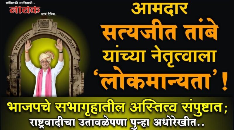आमदार सत्यजीत तांबे यांच्या नेतृत्वाला ‘लोकमान्यता’! भाजपचे सभागृहातील अस्तित्व संपुष्टात; राष्ट्रवादीचा उतावळेपणा पुन्हा अधोरेखीत..