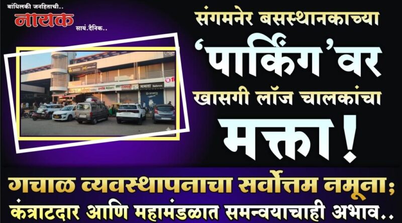 जिल्ह्यातील देखण्या वास्तूत गणना होवूनही विविध बेकायदा उद्योगांचे आगार ठरलेल्या संगमनेर बसस्थानकातील वाहनतळाचा (पार्किंग) मुद्दा नेहमीच चर्चेत राहिला आहे. बांधा, वापरा आणि हस्तांतरीत करा या तत्वावर उभ्या राहिलेल्या या बसस्थानकाच्या कंत्राटदाराने व्यावसायिक गाळ्यांच्या बदल्यात कोट्यवधी रुपयांची अनामत जमा केली. मात्र करारानुसार या अवाढव्य इमारतीच्या सुरक्षेसह व्यावसायिक गाळेधारकांकडून वसुल केलेल्या रकमेच्या बदल्यात त्यांना प्राप्त नैसर्गिक हक्कांच्या संरक्षणासह परिसराची नियमित स्वच्छता, शिस्तबद्ध आणि बसस्थानकाशी संबंधीत बाह्य वाहनतळाचा वापर, स्थानकाच्या रचनेतच असलेल्या मात्र समन्वयातून अंमलबजावणीच्या प्रतिक्षेत असलेल्या भूमीगत वाहनतळाचा व्यावसायिक वापर, उत्तरेकडील प्रवेशद्वाराचा विषय नियमित असण्याची अपेक्षा असताना असूनही नसल्यागत आहे. त्याचा फटका हजारों प्रवाशांसह संगमनेरकरांनाही सोसावा लागत असतानाच आता या गचाळ व्यवस्थेचा लाभ घेत काही लॉज मालकांनी चक्क बसस्थानकातील व्यावसायिक गाळेधारकांच्या हक्काच्या पार्किंगवर मक्तेदारी निर्माण केली असून राजरोसपणे लॉजमध्ये मुक्कामी येणार्या ग्राहकांची वाहने परिसरात दाटीने उभी केली जात आहेत. हा प्रकार गाळेधारकांसह संगमनेरकरांनाही चीड आणणारा असून महामंडळाच्या विभागीय कार्यालयाने या प्रकारांकडे गांभीर्याने पाहण्याची गरज आहे.