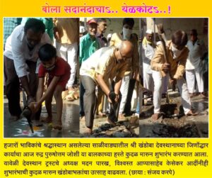 अवघ्या महाराष्ट्राचे कुलदैवत असणारे खंडोबा महाराजांचे संगमनेर शहरातील साळीवाडा येथे जागृत देवस्थान आहे. विशेष म्हणजे स्वयंभू देवस्थान असल्याने शहरवासियांसह तालुक्यातील भाविकांचे ते श्रद्धास्थान बनले आहे. आज (शुक्रवार ता.6) या मंदिराच्या जिर्णोद्धाराचे माजी नगराध्यक्ष तथा नगरसेवक विश्वास मुर्तडक यांच्या हस्ते सपत्नीक भूमिपूजन करण्यात आले. लवकरच भव्यदिव्य मंदीर साकारण्यासाठी भाविकांनी सढळ हाताने दान करावे, असे आवाहनही यावेळी मंदीर व्यवस्थापनाकडून करण्यात आले.