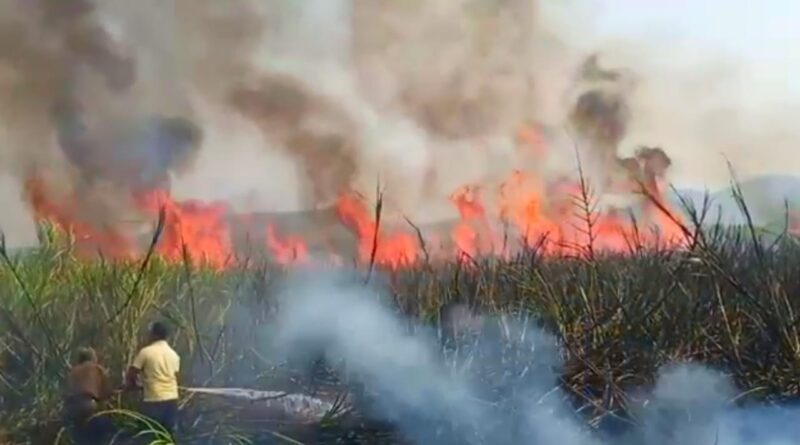 सुगाव फाटा येथे 10 ते 12 एकर ऊस आगीत खाक
