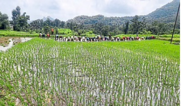 घाटघर परिसरात समाधानकारक पाऊस झाल्याने भात आवणीला वेग! इतर ठिकाणी पाऊस उघडल्याने कामे थंडावली; श्रीभात लागवडीचा प्रयोग